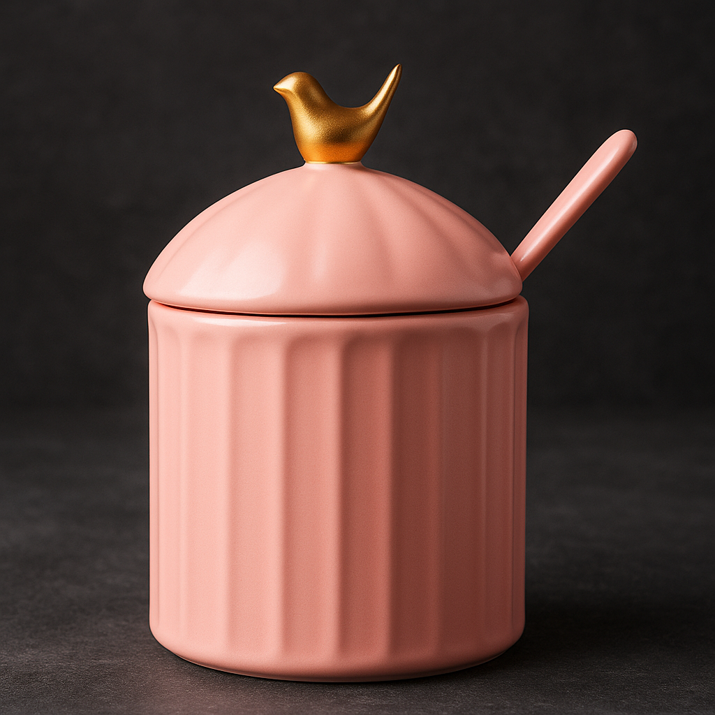 Açucareiro de Cerâmica Colibri Rosa 07x10 cm